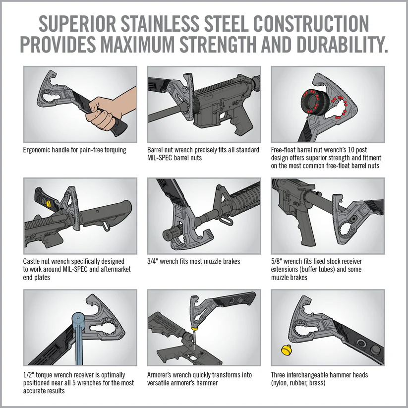 Inclusief Armorer’s Master Wrench – robuuste multitool voor demontage van loop, bufferbuis en meer